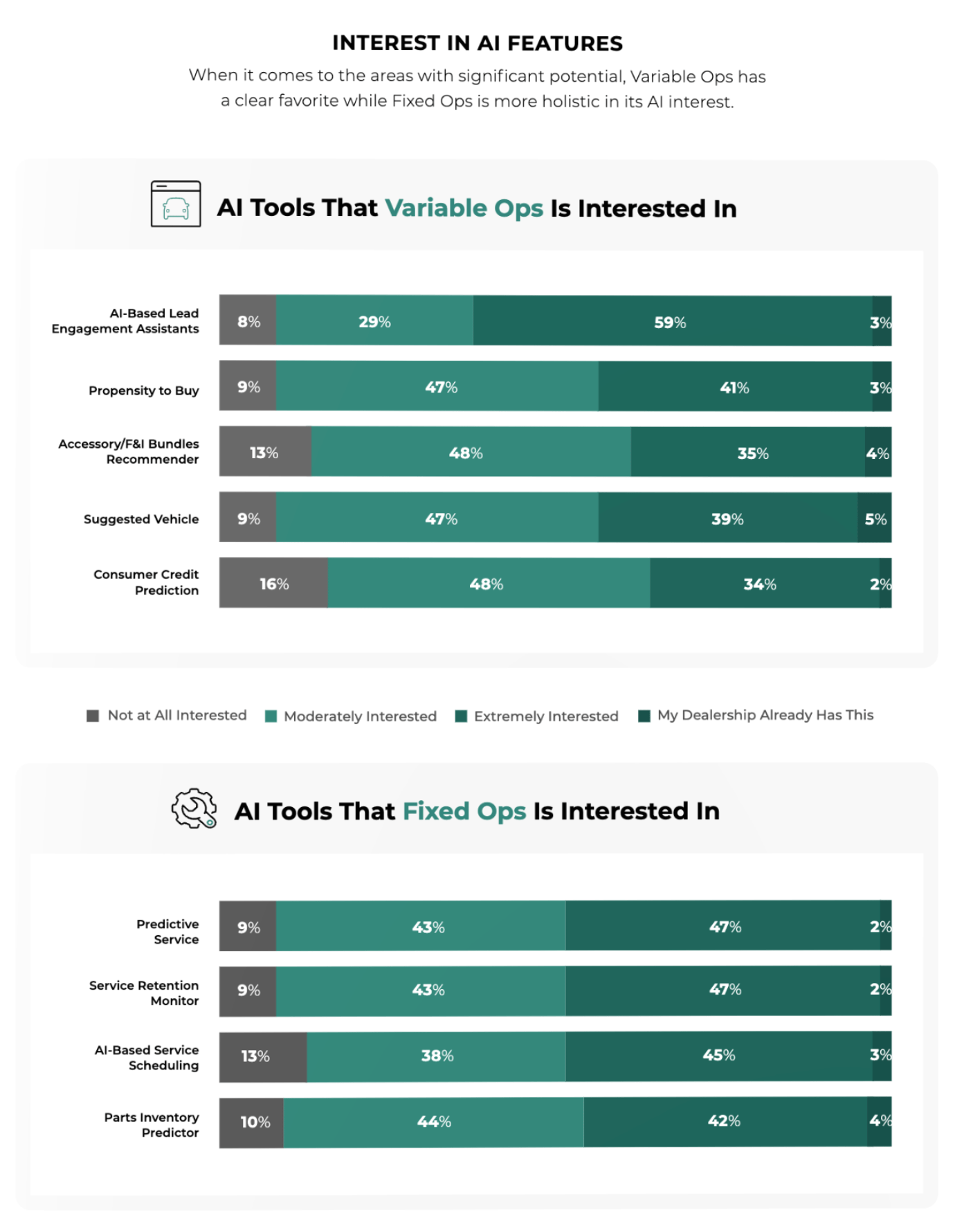61% of dealers think customers prefer AI for certain interactions. Survey your customers to find out what they actually want—you might be surprised.