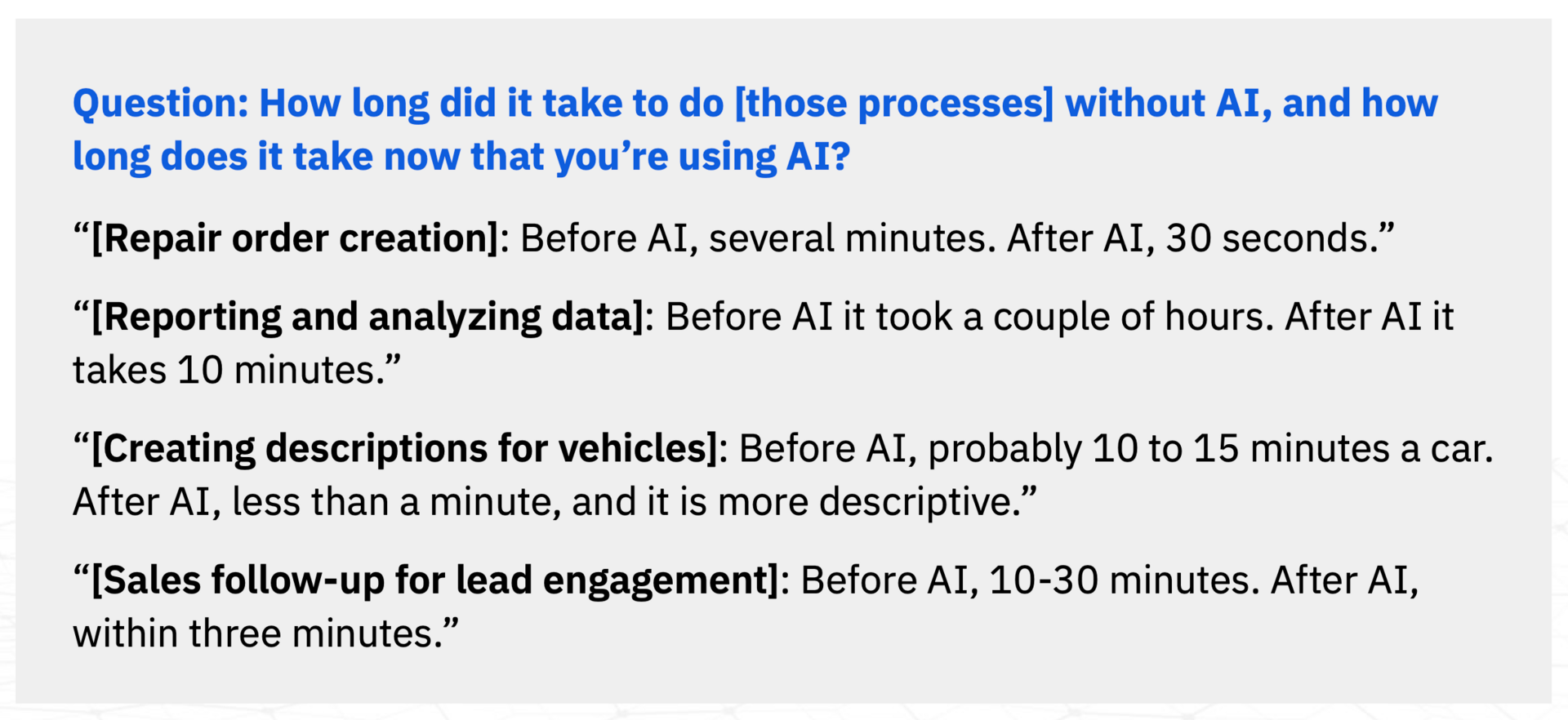 Track how long your team spends on repair orders, vehicle descriptions, reporting, and lead follow-up. These are where dealers are seeing the biggest time savings.